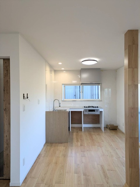長年空き家となっていた和風住宅を大幅にリフォームをして洋風な内装にしました。間取りも変更し広々としたリビングへとなりました。そこはキッチンが続き子育て世帯には家事をしながら子供の様子も見られる安心した空間になることでしょう。